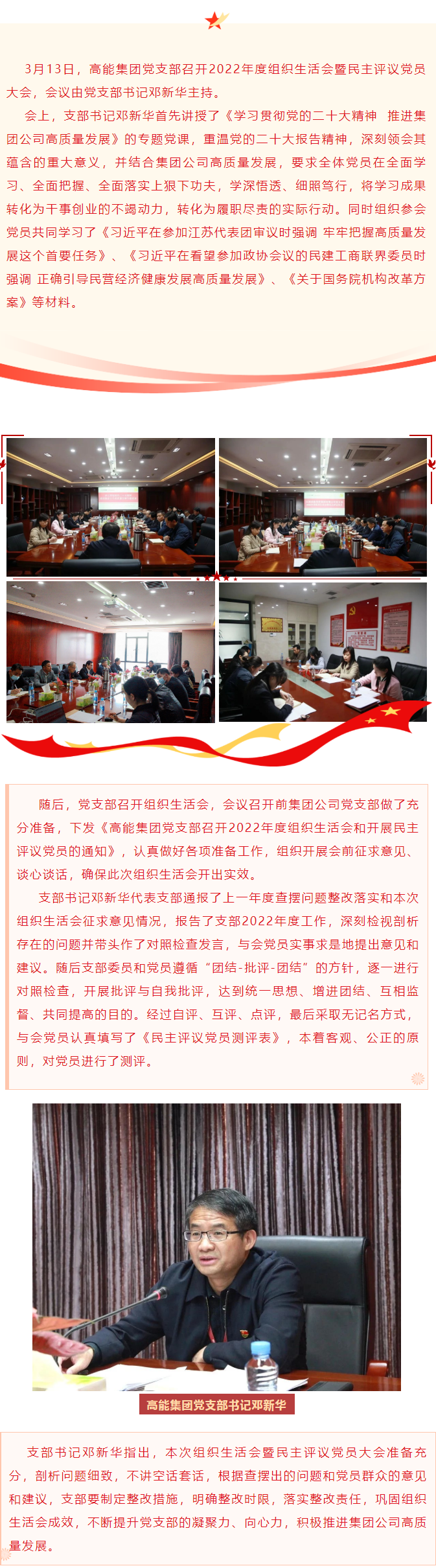 高能集團黨支部召開2022年度組織生活會暨民主評議黨員大會